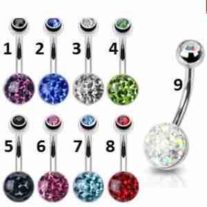 PRZEŚLICZNE KOLCZYKI DO PĘPKA Z KULKĄ ZDOBIONĄ KRYSZTAŁKAMI SWAROVSKIEGO ZATOPIONYMI W SPECJALNYM KLEJU ZAPOBIEGAJĄCYM ICH WYPADANIU