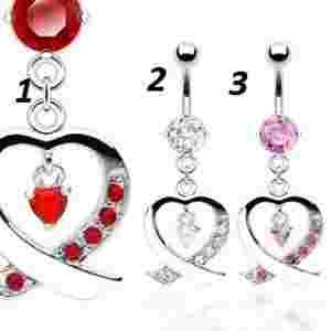 PIERCING KOLCZYK DO PęPKA Z SERCE Z KRYSZTAŁKAMI