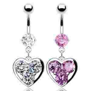 PIERCING KOLCZYK DO PęPKA Z SERCEM 3 KRYSZTAŁKI