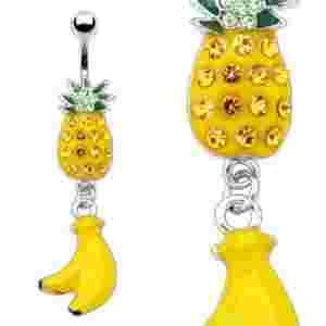 PIERCING KOLCZYK DO PEPKA ANANAS BANAN KRYSZTAŁKI