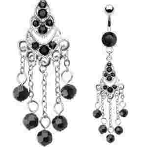 PIERCING KOLCZYK DO PEPKA CZARNA WISZĄCA OZDOBA