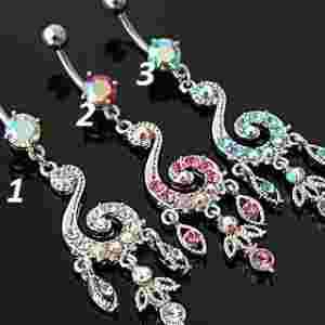 PIERCING KOLCZYK DO PEPKA DŁUGA OZDOBA KRYSZTAŁKI