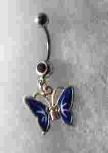 PIERCING KOLCZYK DO PEPKA MOTYL MALOWANY NIEBIESKI