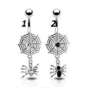 PRZEŚLICZNE KOLCZYKI DO PĘPKA Z OZDOBĄ W KSZTAŁCIE PAJĘCZYNY Z WISZĄCYM PAJĄKIEM