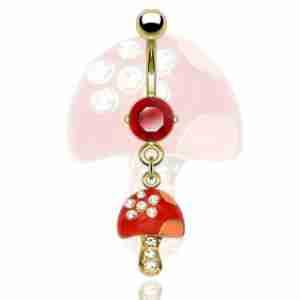 PIERCING KOLCZYK DO PEPKA POZŁACANY MUCHOMOR GRZYB