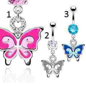 PIERCING KOLCZYK DO PEPKA RĘCZNIE MALOWANY MOTYL