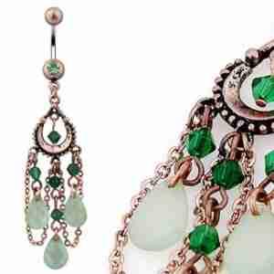PIERCING KOLCZYK DO PEPKA ZIELONE KRYSZTALKI