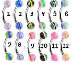 Piercing kolczyki do brwi kolorowe akryl 1,2/8/3