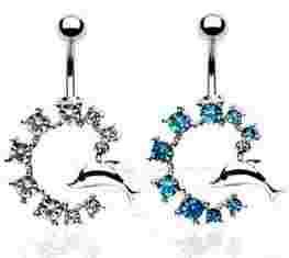 Piercing kolczyki do pępka kolorowe delfinki