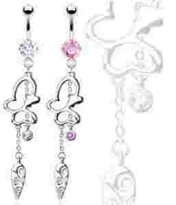 Piercing kolczyki do pępka wiszący motylek