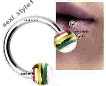 PIERCING PODKOWA 1,2 x 10 x 4 mm REGGAE RASTA