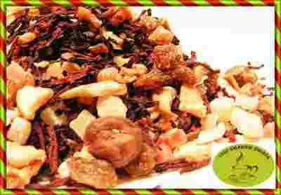 Mieszanka suszonych owoców, w której znajdziemy: hibiskus, buraka, papaye, jabłko, ananas, kiwi, cynamon, migdały, orzechy, anyż, kokos.
