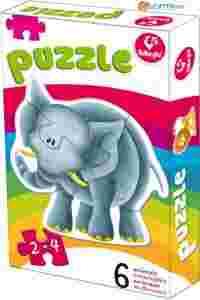 Miś i rybka są dwuelementowe, pozostałe: trzy i czteroelementowe. Doskonała zabawa edukacyjna dla najmniejszych dzieci. W serii znajdują się również puzzle ze zwierzątkami tradycyjnymi oraz pojazdami.