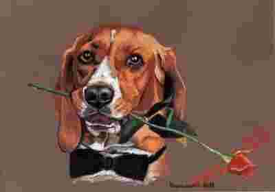 Pies z różą Obraz rysunek PREZENT na WALENTYNKI