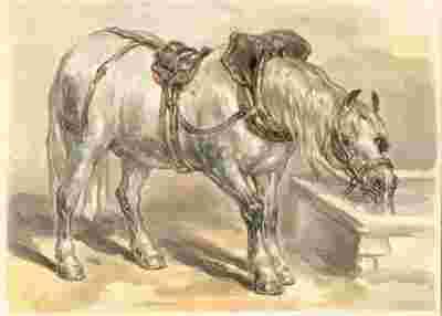 PIJĄCY KOŃ akwarela z XiX wieku