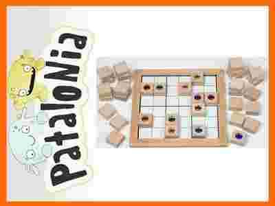 Gra oparta na zasadach sudoku, gdzie liczby są zastąpione drewnianymi klockami z kolorowymi diamencikami.