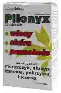 Nie jest sztucznie wzbogacony w syntetyczne witaminy i mikroelementy, których wchłanialność czyli przyswajalność jest znikoma. Pilonyx dostarcza naszemu organizmowi krzem z trzech źródeł: bambus, skrzyp i pokrzywa. Działanie: