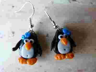 pingwinek kolczyki z modeliny