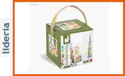 Zestaw zawiera 10 kwadratowch klocków. Zabawka wykonana z kartonu.