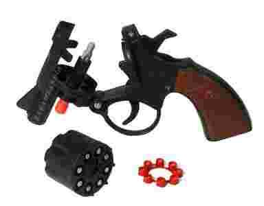 Zabawkowy pistolet wygląda jak prawdziwy rewolwer, posiada obrotowy magazynek bębenkowy oraz spust umożliwiający łamanie pistoletu, co pozwala na jego szybką wymianę lub załadowanie w kapiszony.
