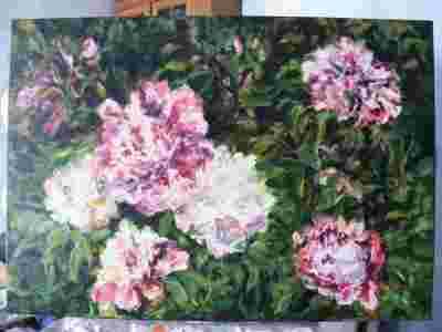 Piwonie, akryl, 100/70