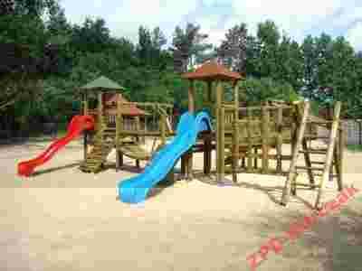 Złożony z: Huśtawki podwójnej, Zjeżdżalni, Drabinki, Domku, Ścianki wspinaczkowej