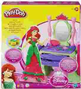 Zestaw zawiera: - 2 tuby błyszczące - 1 tuba play-doh plus - toaletkę z wałeczkiem i przecinakiem - figurkę Arielki