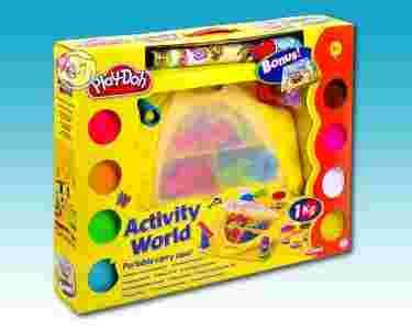 Zestaw ten zawiera wszystko czego potrzebuje dziecko do tworzenia najbardziej niesamowitych kształtów. To wyjątkowe, przenośne opakowanie posiada wbudowany pojemnik na przechowywanie ponad 30 akcesoriów. Posiada wbudowane formy i faktury pomagające realizować wszystkie pomysły. Zestaw zawiera: 8 tub ciastoliny w różnych kolorach, 4 komory zawierające liczne akcesoria, nożyczki, drewniany wałek do ciastoliny, 2 tłoki, 6 rolek w różnym kształcie, 1 nóż do ciastoliny, 9 foremek na ciastka w kształcie zwierzątek, formy do liter, cyfr i innych kształtów oraz inne akcesoria. Produkt przeznaczony dla dzieci powyżej 3 roku życia.