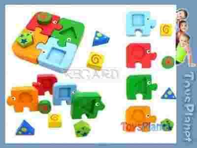 Zadaniem maluszka jest dopasowanie do siebie odpowiednich klocuszków - puzzli.