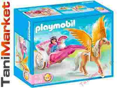 W zestawie figurka Pegaza z ruchomymi skrzydłami, kareta i figurka księżniczki.