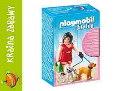 Pani z pieskami 5490. Zestaw zawiera figurkę Playmobil, którą można przebierać, 2 pieski na smyczy i torebkę.