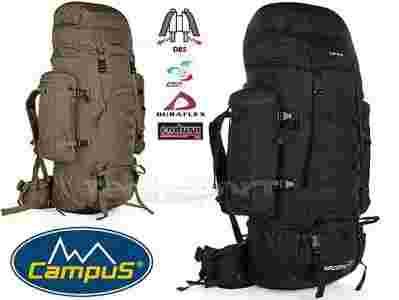 Rewelecajny plecak taktyczny renomowanej firmy Campus. Model "RECON 70" to idealne rozwiązanie na długie wycieczki górskie, wspinaczkę wysokogórską, piesze wędrówki czy narty! Dzięki zaawansowanemu systemowi nośnemu DBS w połączeniu z systemem wentylacyjnym Air-Con i anatomicznie ukształtowanymi szelkami, plecak mimo swoich dużych gabarytów bardzo dobrze się nosi, jest wygodny i nawet po długiej wędrówce nie będziemy czuli zmęczenia. Bardzo pojemny - można w nim pomieścić sporo niezbędnych rzeczy - posiada dwie pojemne komory połączone ze sobą przegrodą zapinaną na zamek przez co dolna komora zapewnia dostęp do zawartości plecaka od dołu (nie trzeba rozpakowywać całości, żeby wyciągnąć coś co jest na dnie).