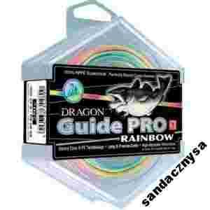 Plecionka przeznaczona do łowienia w morzu, z kutrów i mniejszych łodzi. Dzięki metodzie Heavy Core II PE uzyskano plecionkę okrągłą w przekroju, w pełni nierozciągliwą, o dużej odporności na zamarzanie i uszkodzenia mechaniczne. Specjalny system wielokolorowego barwienia umożliwia wędkarzowi precyzyjną ocenę głębokości prowadzenia przynęty, bez konieczności stosowania kołowrotka z licznikiem głębokości. Plecionka jest podzielona na różnokolorowe, dziesięciometrowe odcinki, zaznaczone każdorazowo na początku, w środkui na końcu dwudziestocentymetrowymi, czarnymi paskami. Takie rozwiązanie pozwala wędkarzowi na określenie z dokładnością do 2–3 metrów głębokości, na której znajduje się używana przez niego przynęta. Plecionka Guide PRO Rainbow jest dodatkowo zabezpieczona specjalną powłoką z włókien aramidowych, niwelującą szkodliwy wpływ tarcia i niszczące właściwości wody morskiej.