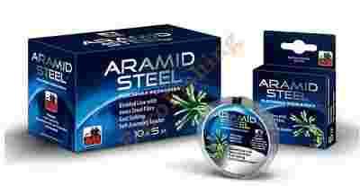 Aramid Line to nowoczesny materiał przyponowy łączący w sobie siłę i miękkość. Jest wyjątkowym połączeniem polietylenu o wysokiej masie cząsteczkowej z włóknem ze stali nierdzewnej w kombinacji, która gwarantuje optymalne wykorzystanie najlepszych cech obydwu tych materiałów. Powstały materiał jest niezwykle miękki, o gładkiej powierzchni, a jednocześnie zadziwiająco odporny na rozciąganie, wszelkiego rodzaju przetarcia, jak i sprawdza się w kontaktach z zębami drapieżników. Materiał posiada właściwości anty-splątaniowe, przy jednocześnie zachowanej łatwości do wiązania. Świetnie nadaje się do przywieszek, jako boczny trok oraz przypon karpiowy. Dostępny w odcinkach 5 m, kolor zielony.