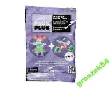 Fioletowa saszetka z klockami PLUS-PLUS w wersji MINI, zawierająca mikro-zestaw 35 elementów w pastelowej wersji kolorystycznej.