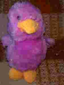 PLUSZOWY KURCZACZEK FIOLETOWY Z BROKATEM DŹWIĘK