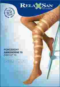Pończochy terapeutyczne z dzianiny 70 DEN o stopniowym ucisku.