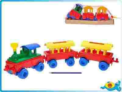 POCIĄG LOKOMOTYWA + 2x WAGONY 65cm ZABAWKA HIT