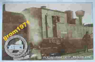 PRZEDMIOTEM AUKCJI JEST KARTA POCZTOWA WYDANA PRZEZ SIEDLECKI KLUB KOLEKCJONERÓW (2004 r.) UKAZUJĄCA ZDJĘCIE PAROWOZU NR 17893 POCIĄGU PANCERNEGO NR 1 "PIŁSUDCZYK". BYŁ TO JEDEN Z NAJSŁAWNIEJSZYCH POLSKICH POCIĄGÓW PANCERNYCH. ZBUDOWANO GO W BUDAPESZTAŃSKICH WARSZTATACH MAV DLA ARMII AUSTRO-WĘGIER, ZDOBYTY 1 LISTOPADA NA STACJI W PROKOCIMIU. BRAŁ UDZIAŁ W ODSIECZY LWOWA JAKO PP "ODSIECZ", POTEM ROZDZIELONO GO NA DWA SKŁADY (PP 1 "PIŁSUDCZYK" I PP 2 ŚMIAŁY"). BRAŁ UDZIAŁ W WOJNIE Z UKRAIŃCAMI I BOLSZEWIKAMI. NA POCZĄTKU LAT DWUDZIESTYCH WYMIENIONO CAŁKOWICIE SKŁAD BOJOWY, W KAMPANII WRZEŚNIOWEJ DZIAŁAŁ JAKO NR 52. NA TLE ZDJĘCIA ODZNAKA PAMIĄTKOWA PP "PIŁSUDCZYK". STAN BDB. KOSZT WYSYŁKI POLECONEJ 4,00 ZŁ.