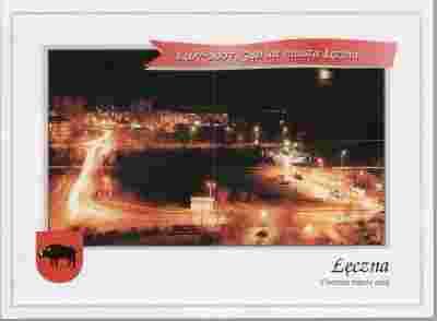 pocztówka ŁĘCZNA Centrum miasta nocą HERB