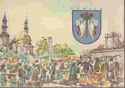 pocztówka ŁOWICZ Rynek grafika WOCHN Herb ARKADY