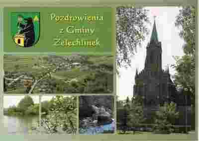 pocztówka ŻELECHLINEK Kościół Panorama HERB