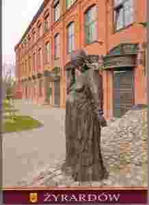 pocztówka ŻYRARDÓW Rzeźba Prządka HERB