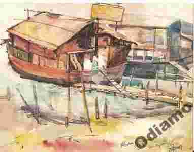 Pocztówka Bangladesz Dhaka łódź restauracja Buriga