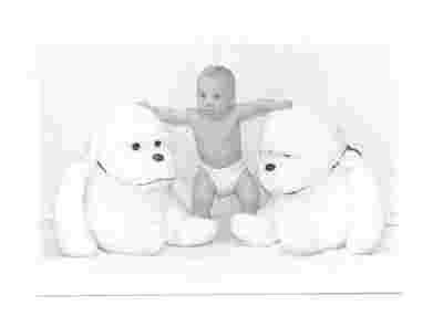 Pocztówka - Bobas i dwie pluszowe małpy / dzieci