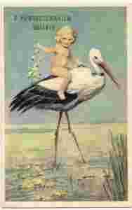 pocztówka BOCIAN I DZIECKO