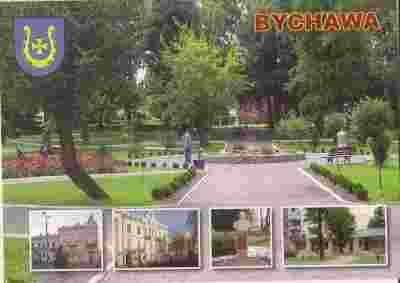 pocztówka BYCHAWA Park Pomnik Centrum HERB