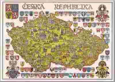 pocztówka CZESKA REPUBLIKA MAPKA HERBY