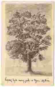 pocztówka DĄB rysował OWIDZKI lata 60