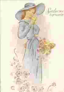 pocztówka DAMA W STYLOWYM KAPELUSZU